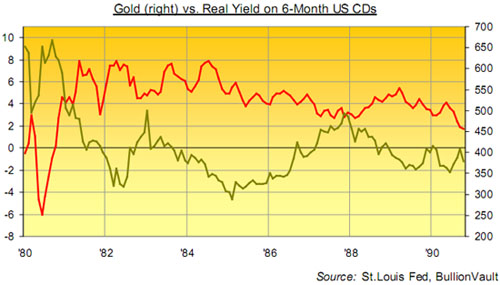 Who needs a lump of dumb metal if just holding cash pays 4.5% real returns each year on average, as it did in the '80s?