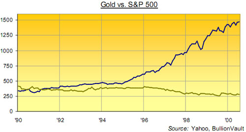 Why bury your savings in a rare, deeply liquid but unyielding asset when stocks keep rising by one-fifth per year—and paying a 2.4% yield each year on top—as they did in the '90s. . .?