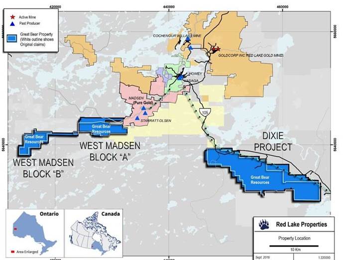 Great Bear Resources is a Canadian precious metals exploration company engaged in advancing projects with special merit in leading mining regions, currently working the famous Red Lake District in northwestern Ontario. Great Bear Resources is earning a 100% royalty-free interest in the Dixie and Madsen properties, which consist of a total of 10,000 hectares in the Red Lake District. All Great Bear's Red Lake projects are accessible year-round through existing roads. The company is led by Mr. Chris Taylor and a team of experienced and proven mine finders in many mining districts, but they have also been very successful in the Red Lake mining camp. See information about the team here.