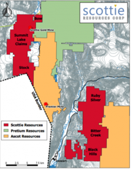 Scottie Resources Corp. (SCOT:TSX.V) is a lesser known Golden Triangle (northern BC, Canada) gold junior, who's ship may have just come in…. Typically, when the word, "blockbuster" is used, it refers to drill results. In this case I refer to Scottie's recently announced option on a sizable (>1,500 hectares) piece of property (the Summit Lake claims) surrounding its existing 100%-owned Scottie Gold Mine property {see map below). Even before this announcement, Scottie seemed like a natural takeout target for Ascot Resources (TSX-V: AOT), [C$160 million market cap]. (Note: the company announced the intention to raise C$1.0 million in an equity capital raise on May 13th.)