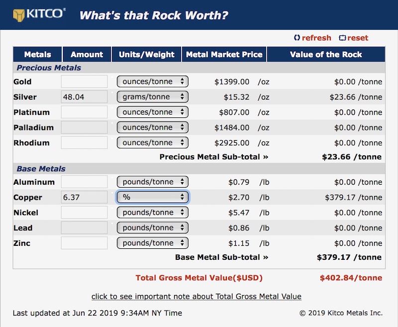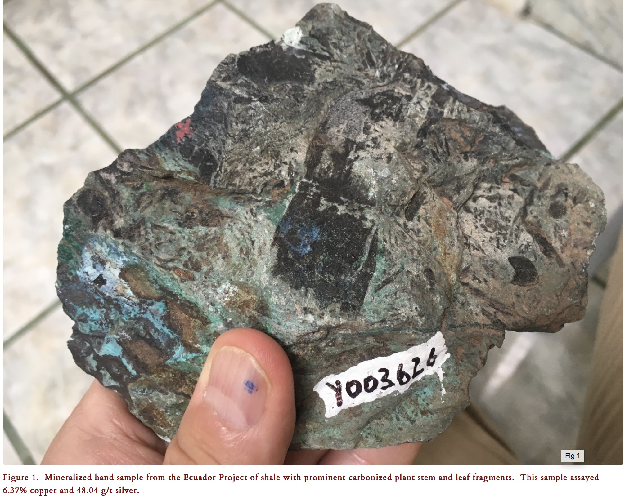 This is key for Aurania and Ecuador because these deposits tend to be so large. So far Aurania has tracked Kupferschiefer material as long as 22 kilometers (22 km) and 1 km wide. You can see in the picture above a classic Kupferschiefer material with over $400 rock. It's oxide copper highly suitable for inexpensive processing with SX-EW techniques.