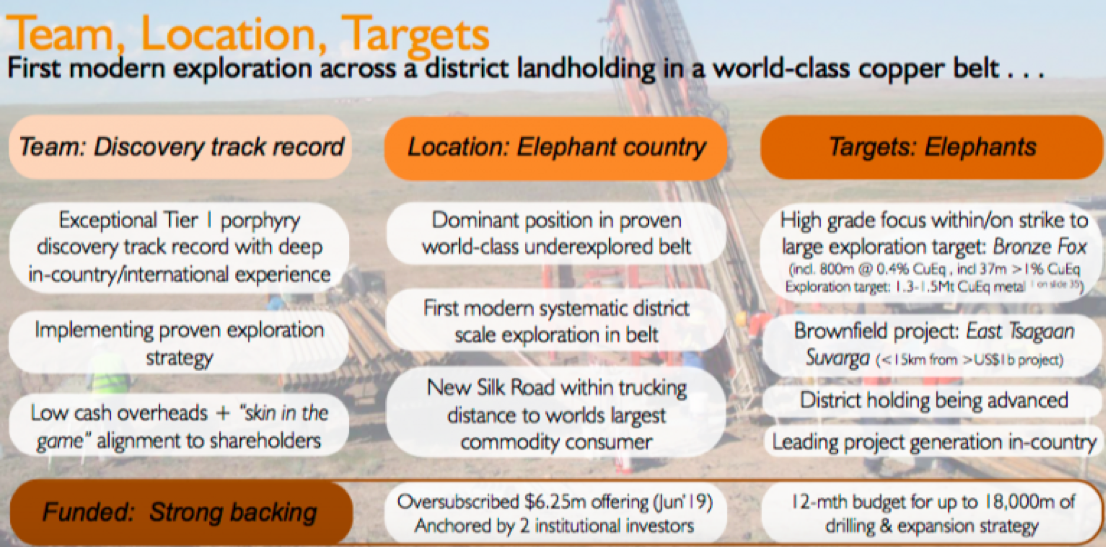 Mongolia has unique geological potential to host globally significant discoveries, and that is what we are focusing on. This raising, with the accompanying warrant package, aligns our capital markets strategy with our exploration and expansion plans and gives us a good shot (but no certainty) at making new discoveries.