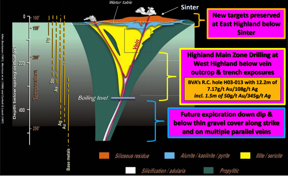But what mainly attracted Bravada (and its joint venture partner OceanaGold) to this project is the sinter-based exploration theory.