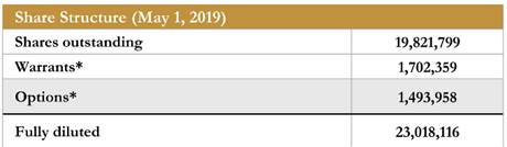 Edward Karr: We have today as of the end of June 2019, just around 20 million shares issued and outstanding of common stock. We have recently closed a $2.5 million financing, that was a non-brokered financing predominantly done by existing supporting shareholders of the company. That was structured as a series F preferred. It was an at market deal, so the preferred converts into common stock at $1.14 per share. The only reason we did it as a preferred is one of the investors wanted a beneficial owner limitation on it.
