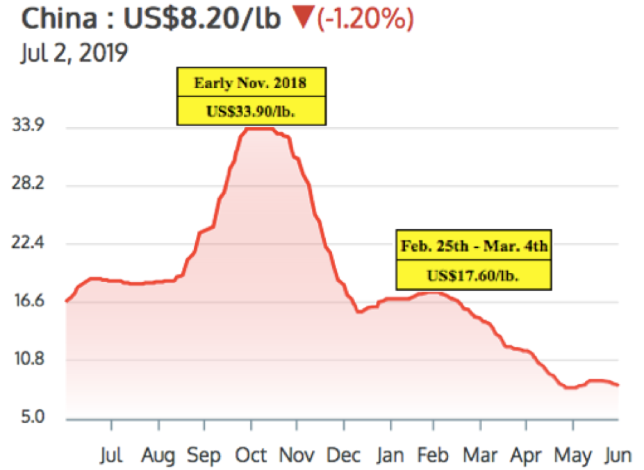 Paul Cowley: Since early March 2019 the vanadium price has taken an unexpected turn lower. Prices are not responding to the bigger picture demand and supply imbalance. Chinese steel plants did not recharge their vanadium inventories in this period, as many expected they would, putting pressure on traders to liquidate at undercutting prices, but they will have to restock. The U.S.-China trade wars, and some shortfall of enforcement of new Chinese rebar standards, appear to have exacerbated the situation in the short term.