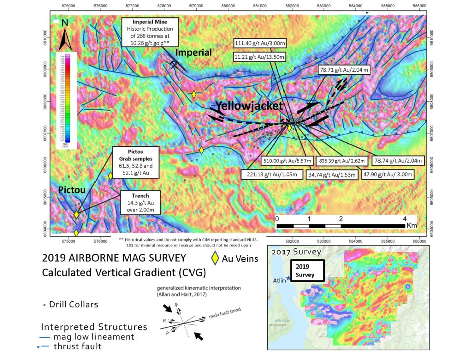 Another high-priority target would be the LD showing, which is located just 10 kilometers southeast of Yellowjacket, but Brixton will also focus on the Imperial and Pictou zones, while a newly discovered gold-in-soil anomaly should also be followed up on.