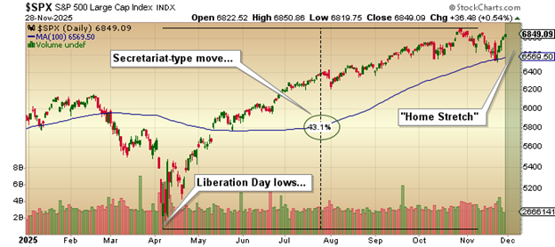 From the start of 2025 until Liberation Day, the bull was Secretariat and the bear was Sham as they battled each other for the lead but once Trump scrapped the Department of Government Efficiency and decided to delay all tariffs, Wall Street threw on its afterburners and soared ahead of the rest of the field, leaving Sham to finish out-of-the-money and dead last and that will most certainly be the story for the 2025 performance summary if December goes out as robustly as did November.