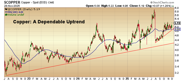 Influencers on "X," and "Instagram," and "Facebook" constantly refer to the "severe silver shortage" and throw up targets of $200, $300, $500 per ounce while failing to address the notion that at those prices, silver better have found a new application in transmitting electricity, oil, or natural gas. Otherwise, every silver serving tray, candlestick, spoon, and fork will be up on eBay or Kijiji looking for a bid — any bid — in order to monetize the stuff grandad kept hidden in his closet. Such is not the case for copper. I am overweight, that boring red metal that will never be classified as a "cult asset" like Bitcoin or gold and silver. I like it because it is used everywhere on the planet and required on every continent by every race, creed, and colour that aspires for a clean method of heating their home and cooking their food and removing waste through pipes, wires, and cathodes.