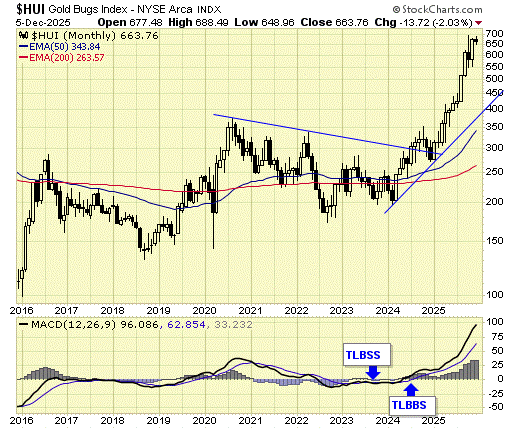 The gold and silver sectors are on a long-term buy signal, triggered at 295.