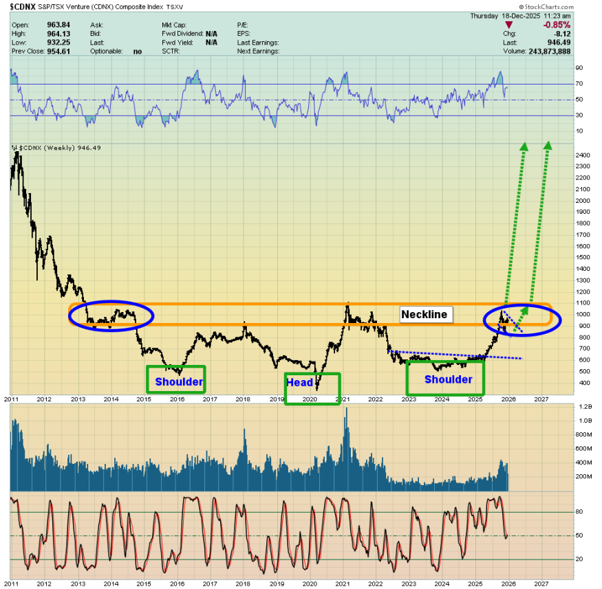 Many investors have worked hard to accumulate key CDNX miners in this massive base pattern. The pattern involved a lot of time.