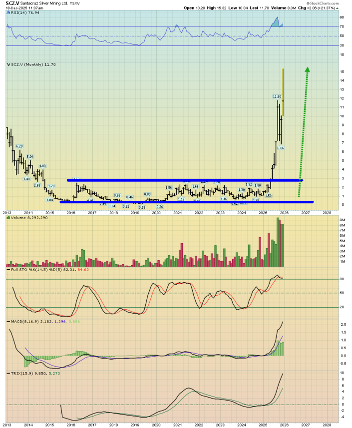 Rather than trying to offset gains with losses on stocks that are likely set to surge higher, my suggestion is for investors to sell a modest 30% of multi-bagger winners like Santacruz Silver Mining Ltd. (SCZ:TSX.V; SCZMF:OTC; 1SZ:FSE).