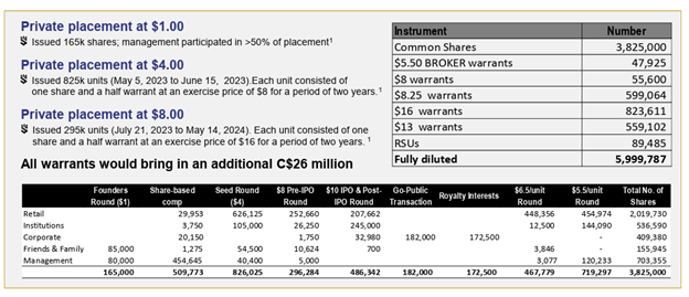 Management ownership is meaningful and aligns interests with shareholders. Insider participation in prior financings and open-market purchases adds an additional layer of confidence for long-term investors.