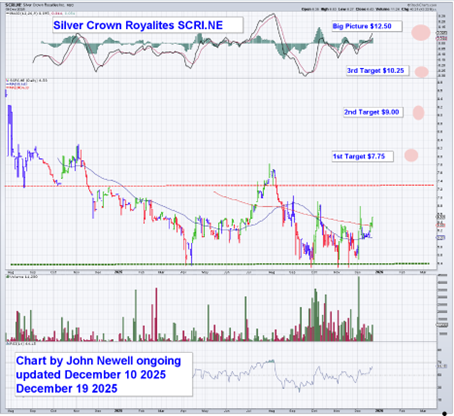 Silver Crown Royalties Inc. Silver Crown Royalties Inc. (SCRI:CBOE; SLCRF:OTCQX; QS0:FSE) is positioning itself as a pure-play silver royalty company at a time when silver is re-emerging as both a monetary and industrial metal. With an early-stage portfolio, visible growth in attributable ounces, and a technical chart starting to turn higher, the setup is becoming increasingly interesting.