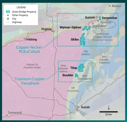 The Serpentine copper-nickel project in northern St. Louis County, Minnesota, is the cornerstone asset and the primary near-term value driver for Green Bridge Metals.