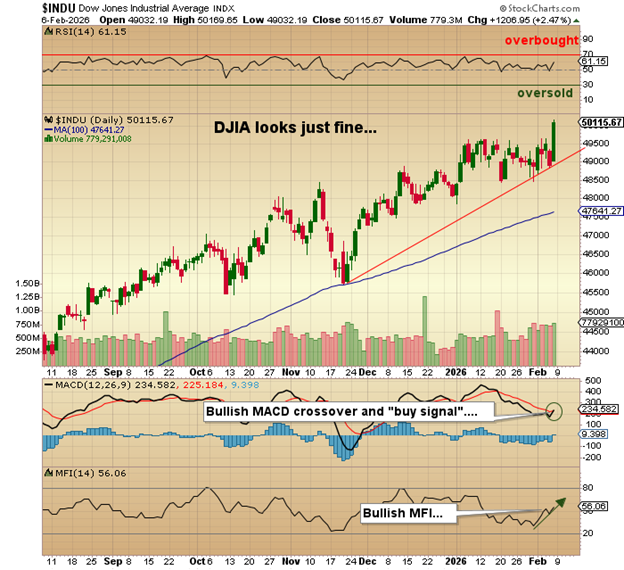 No sooner had the pundits sounded the death knell for U.S. equities on Thursday afternoon than the Wall Street "conspiriati" sprang into full response mode, taking the venerable Dow Jones Industrial Average to record highs above 50,000 for the first time in history. Mind you, the DJIA got nothing in the form of "company" in its move to record high ground as the S&P 500 remains 1% and the NASDAQ 100 remains 4.33% below their respective highs.