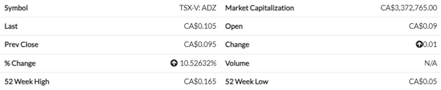 At a recent share price of approximately CA$0.10, Adamera Minerals Corp. (ADZ:TSX.V) carries a market capitalization of roughly CA$3.5–4.0 million. This is based on approximately 27 million shares outstanding following recent financings.