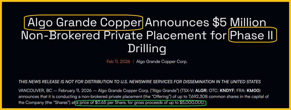 The stock closed at CA$0.72 on Friday, February 16, above the private placement price of CA$0.65.