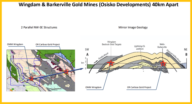 Wingdam is part of the much larger Eureka thrust fault trend. That trend includes the 2.5mm oz Spanish Mountain mine, the Karus Gold high-grade gold discovery, and the recent Golden Cariboo project to the north.
