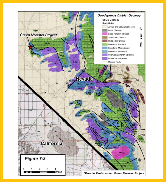 Glenstar's flagship property, the "Green Monster," is a Co-Ni-Cu-U mineral property that is centered on a high-grade, polymetallic mineralized property located only about 40 miles southwest of Las Vegas, Nevada.