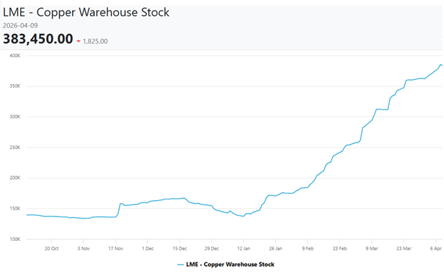 Inventories started to rise in November of last year and have since shown little signs of abatement (meaning "drawdown") but when you try to picture the amount of copper was used up (destroyed) during the five weeks of belligerence in Iran, you are forced to think "replacement" and that means that over the spring and summer of 2026, a great many drones,