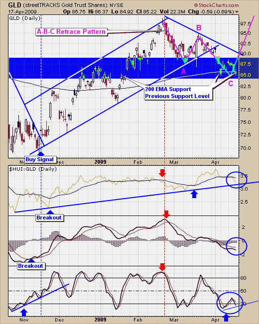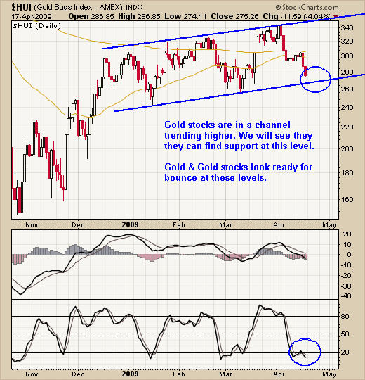 Trading gold stocks using a proven trading model and risk management helps to keep trading signals black and white taking the guesswork out of trading. The chart below shows that gold stocks are near a support level and when you combine this with the BP chart above which just turned positive I know I can start looking for some potential long positions in gold of gold stocks if we do happen to get a strong reversal to the upside.